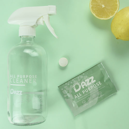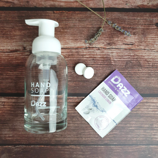 This set offers 5 reusable glass bottles and 7 refill tablets. Try all purpose, bathroom, and glass cleaners, plus foaming hans soap dispensers with 4 unique scents to try! - Remember, after this you only need the refills.